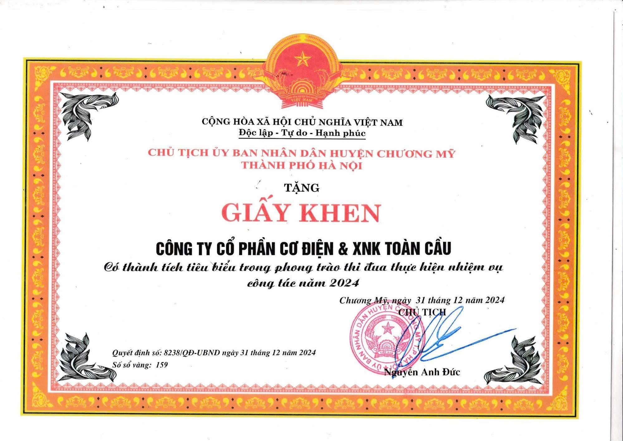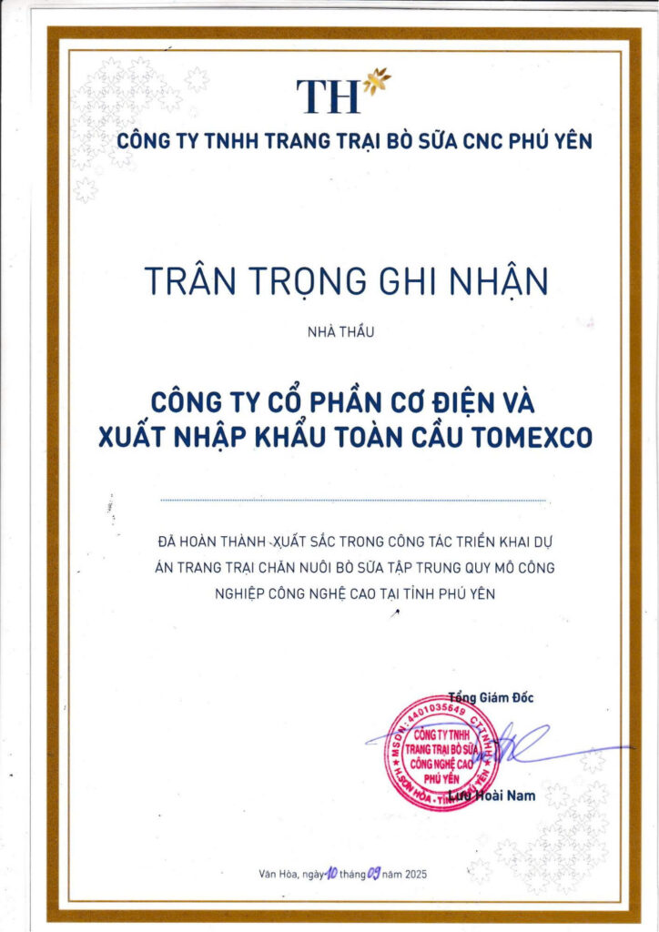 - Cúp và Bằng khen ghi nhận nhà thầu triển khai dự án hoàn thành xuất sắc tại trang trại bò sữa TH Phú Yên năm 2025