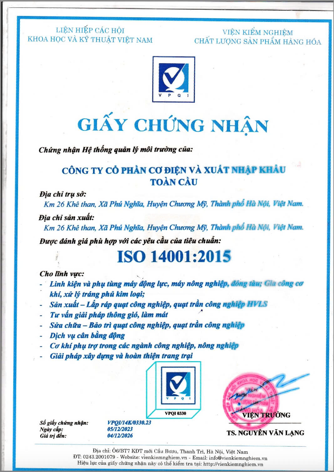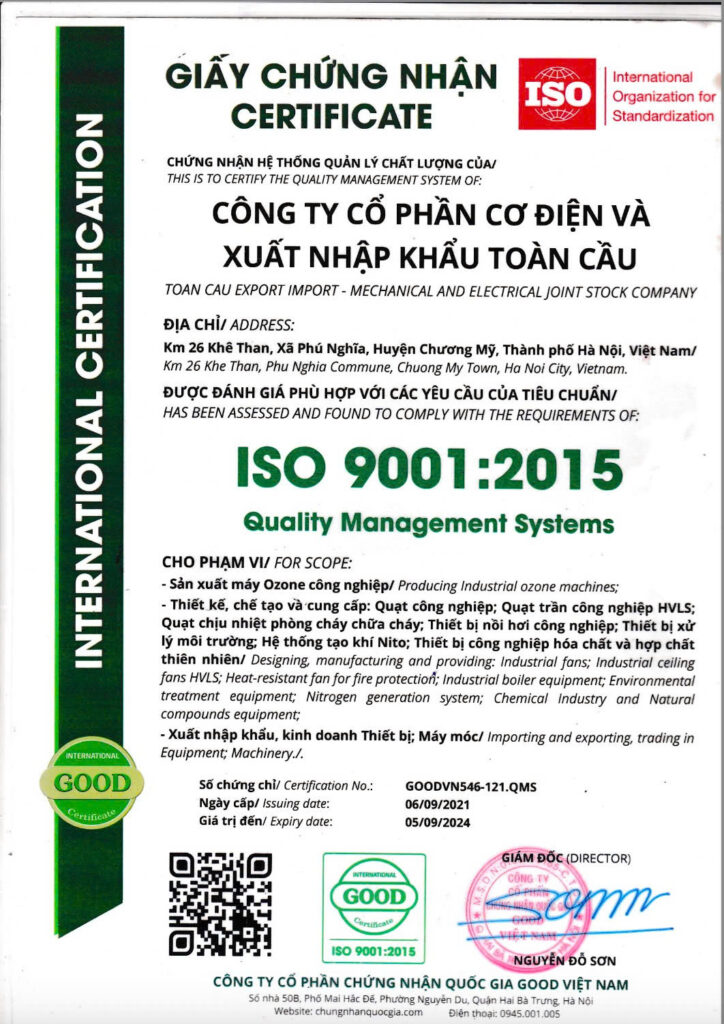 - Chứng nhận tiêu chuẩn áp dụng: ISO 9001: 2015. ISO 14001:18