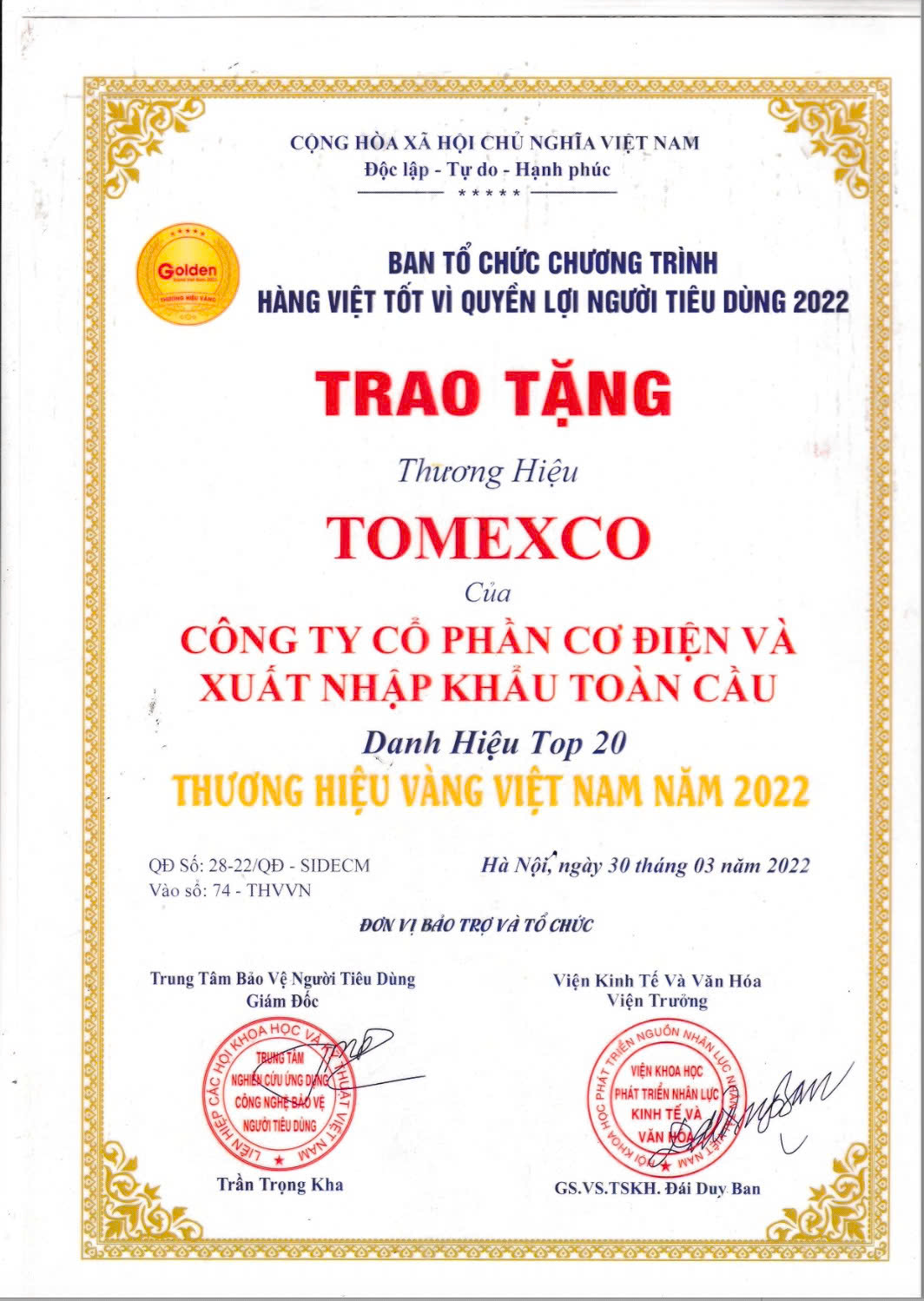 - Top 20 thương hiệu vàng năm 2022